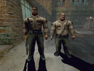 | なんか警備員らしい。しつこく追ってくるので嫌いです。特に左の奴はいきなりショットガン撃ってくるので馬鹿野郎様です。右側の奴の武器はピストルだ。野球だかサッカーだかの中継をラジオで聞いているのでその隙にやっつけよう。 | ![]() |
