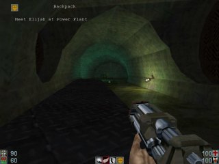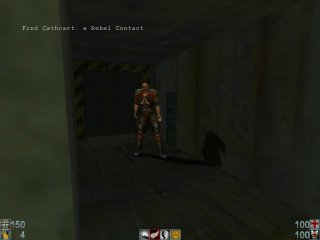 先に進むと何やら人が立っている。武器は持ってないようだ。でも手にレンチを持ってるぞ。もしかしてエンジニア?(ってそれじゃTFCだ) なんだか英語がよく分からないので撃ち殺しちゃいました(ぉぃ)
